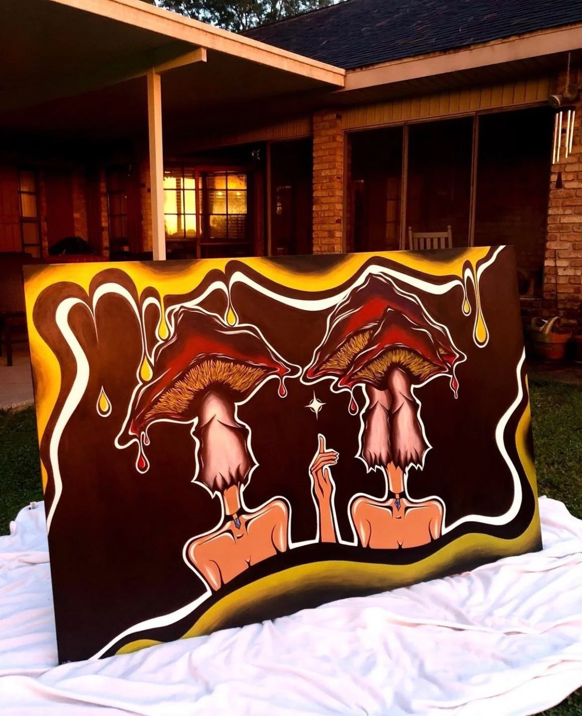 Do You See It? is a deeply personal commissioned work, created for a friend across the country in Oregon. Over 100 hours were devoted to this painting, with careful attention to composition, balance, and visual rhythm to ensure every element aligned with his vision and the unique character of his home. After studying reference images of the space, lush with botanical life and organic textures, I developed a custom color palette focused on earthy undertones and contrasting accents.