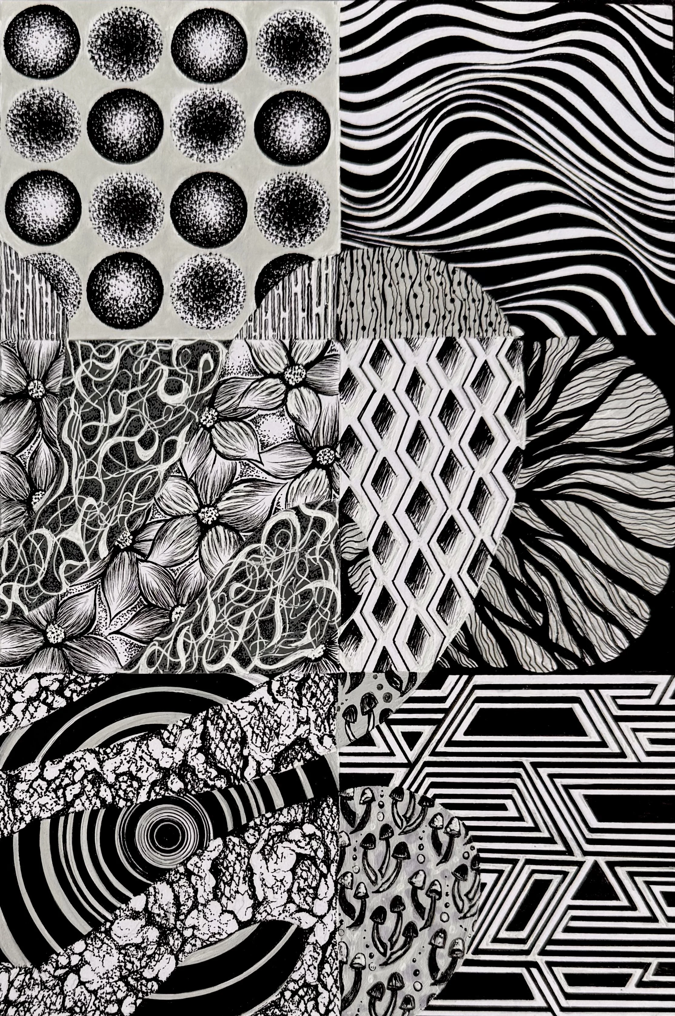 Entwined is a 12-square illustration project, with each block representing a distinct principle of design and organization. Through this series, I explored how foundational art concepts such as balance, contrast, rhythm, and unity interact and support one another within a visual composition. This project deepened my understanding of how these core principles are not isolated, but interconnected, working together to create cohesive and dynamic artwork.